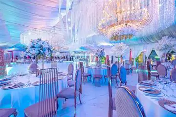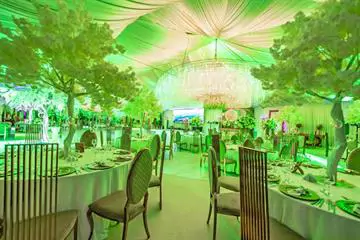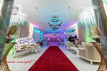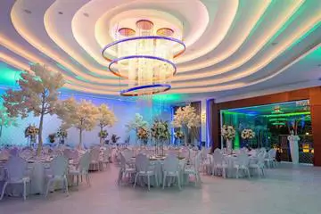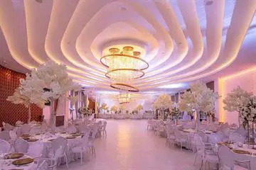 Piesele de rezistență ale salonului vizează candelabrele realizate din cupru, îmbrăcate cu cristale de Boemia; acestea sunt înconjurate de trei inele aurii.