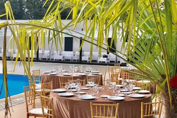 - Chiavari sau scaune tapitate diverse culori, fete de masa 11 nuante si texturi, mese cocktail welcome si mobiler terasa ponton.